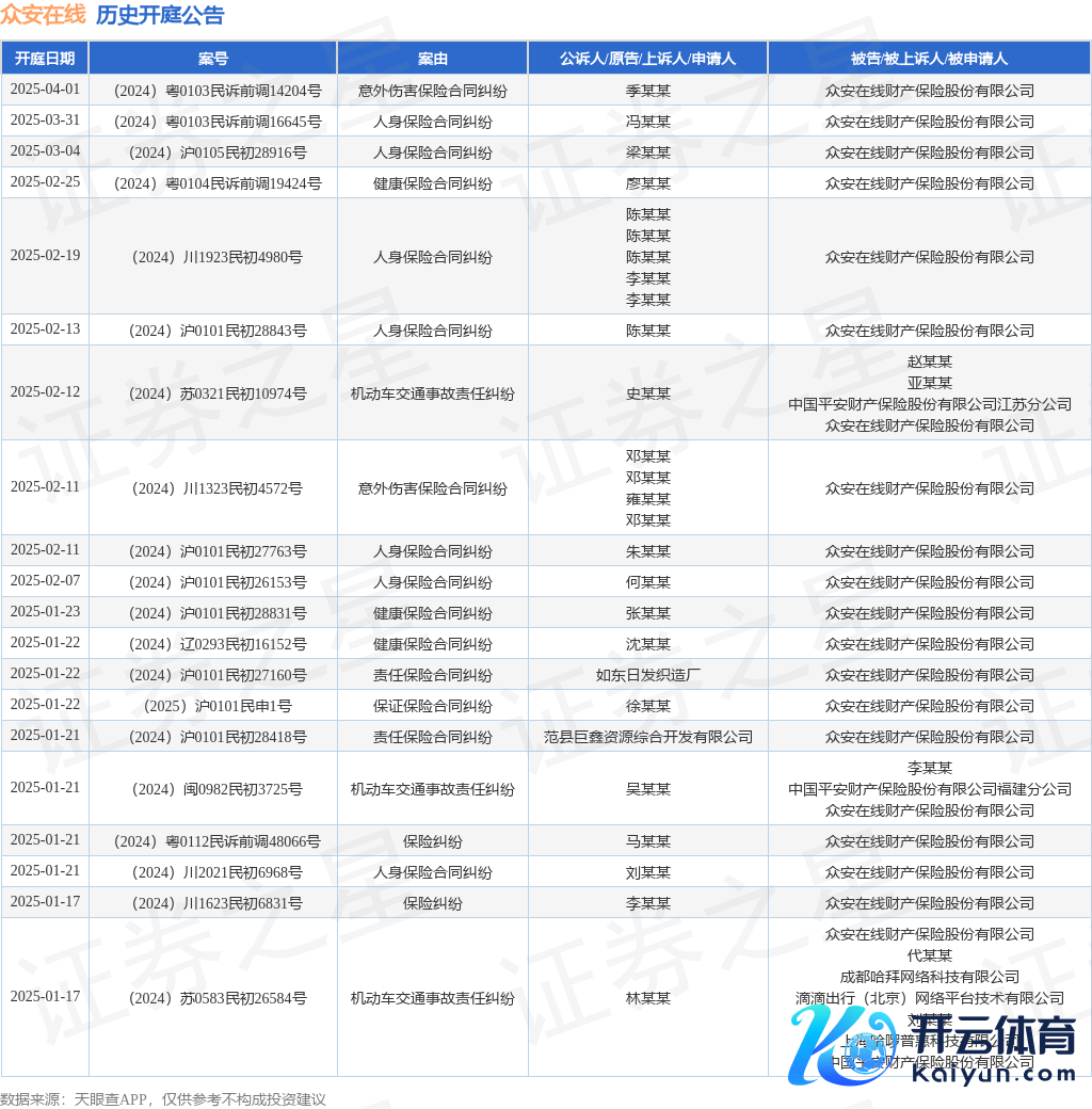 本站音书,左证天眼查APP表示,近日公布了一则众何在线财产保障股份有限公司行动被告/被上诉东说念主的开庭公告九游体育app官网,详备实质如下: