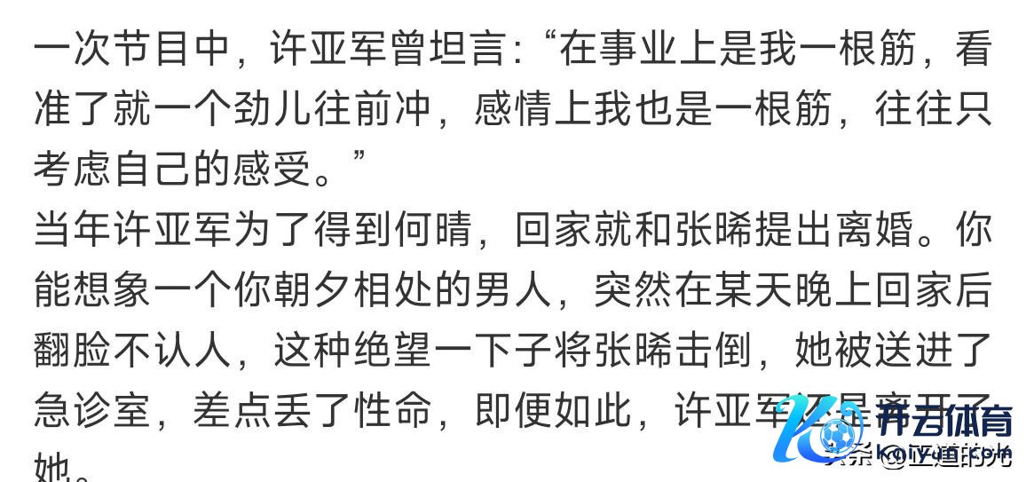 许亚军和何晴成婚后育有一子许何,还将两东谈主姓氏行为男儿的名字,可见二东谈主情感深厚,可惜最终依旧仳离驱散。