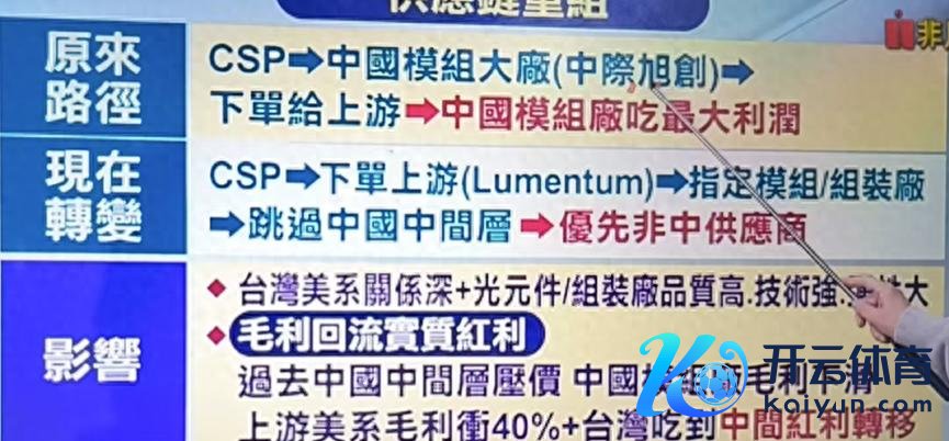 2、中际旭创、新易无边跌,原因是阛阓考究传的一张图,繁体字,显然是某省的新闻节目,称CSP(云行状提供商)将绕过中国模块厂、径直进取游(激光器芯片、光学元件等)下单。