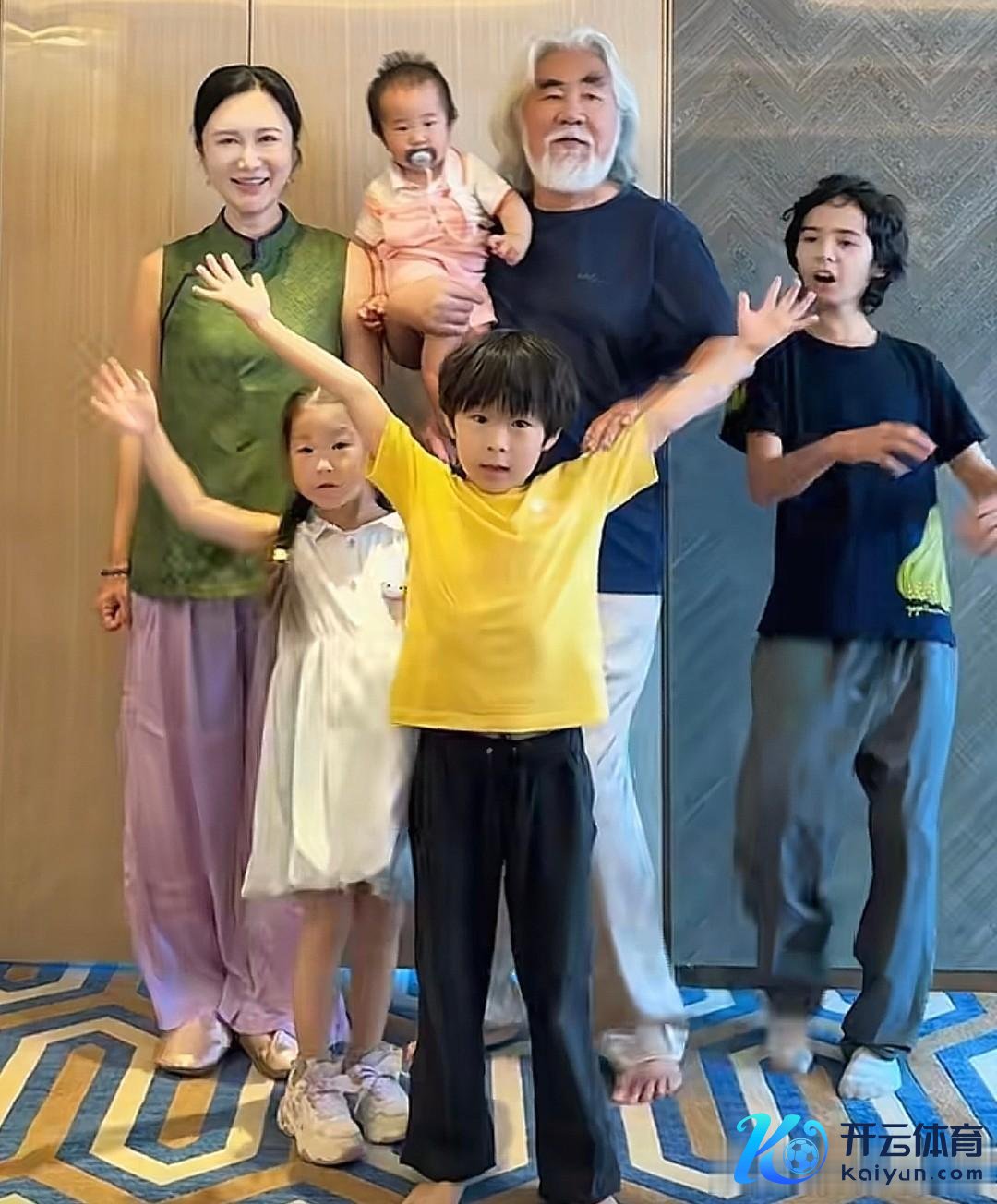 一家六口同期出当今画面里,张纪中带着俩犬子,杜星霖陪着俩女儿,上到74岁,下至1岁多,这个吵杂的全球庭组合起来有种很奇妙的嗅觉,张纪中精气神很足,和内助孩子聊天互动,躯壳硬朗着呢。