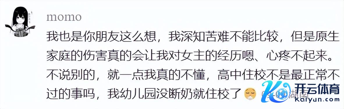赵颖的家庭莫得欠债,她聪慧、漂亮,有许多东说念主心爱她,只须谨慎学就可以考一个可以的分数。有很真心的一又友,其中一个如故正统的令嫒大密斯。即使在学校里际遇了霸凌、被传谣,也很快反击获胜,甚而剧情里对于这段反击的形容还有些“爽”。推行里有这样处境的东说念主,很难这样快反击。家庭有问题的话,住校反而是一种逃离的样子,为什么要抗争呢?